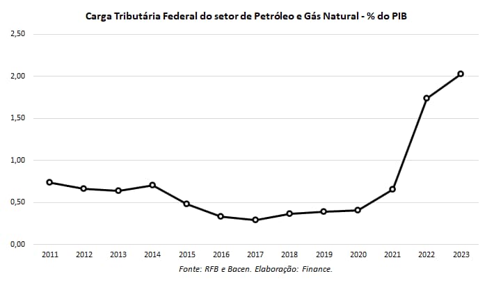 Vale mencionar que o IS também incidirá sobre as exportações, de modo que, a ampliação da carga tributária pode impactar a competitividade do setor, elevando os custos operacionais e diminuindo as margens de lucro. Além disso, os consumidores finais podem enfrentar aumentos nos preços dos combustíveis e derivados, impactando diretamente a economia doméstica. Atualmente, o setor já sofreu com aumentos consideráveis em sua carga tributária (arrecadação sobre PIB), conforme observado no Gráfico 1 (1).
